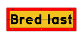 Tydlig gul botten med röd kant och svart text ”Bred last”